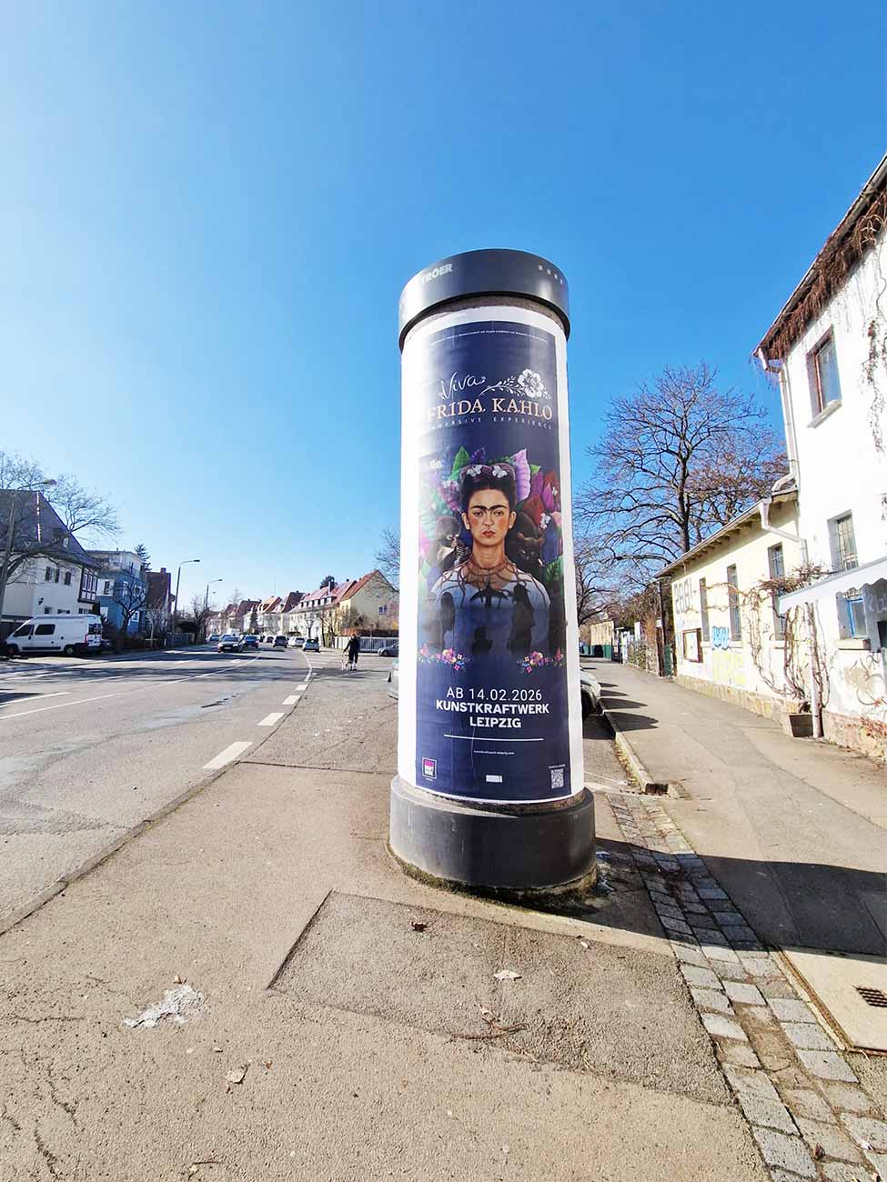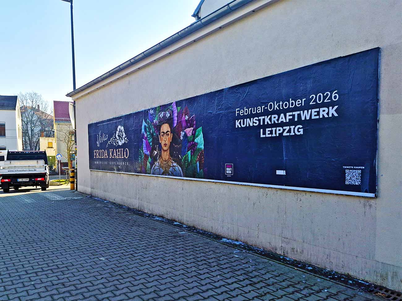 An diesem Wochenende steigt in Ferropolis / Gräfenhainichen das große Grill & BBQ Festival – mit Live-Shows, Tastings, BBQ-Zubehör, Musik,Für die immersive 360°-Ausstellung „Viva Frida Kahlo“ im Kunstkraftwerk Leipzig haben wir eine vielfältige Außenwerbekampagne umgesetzt. Ob auf dem Weg zur Arbeit, beim Stadtbummel oder im Straßenverkehr – die Kampagne macht die ikonische und unverwechselbare Bildwelt der Künstlerin im öffentlichen Raum sichtbar.