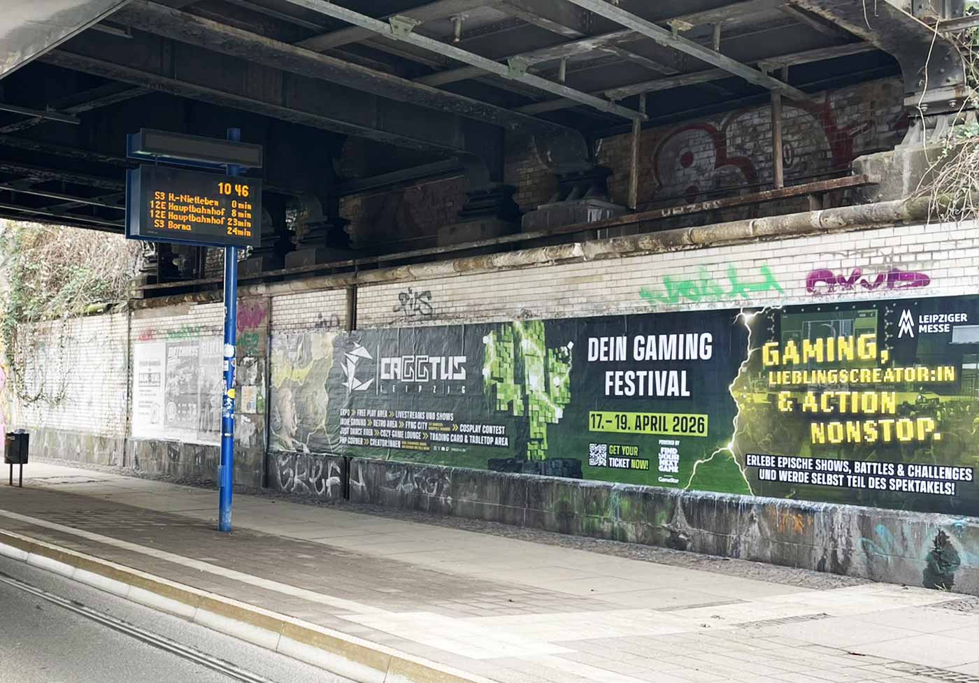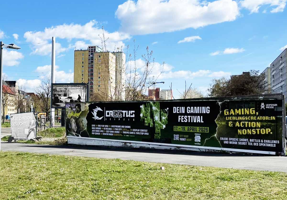 - Die großflächigen Stadtbanner in Leipzig und Halle schaffen maximale Sichtbarkeit im urbanen Raum. Durch ihre Größe sind sie ein echter Game Changer – unübersehbar und prägnant.